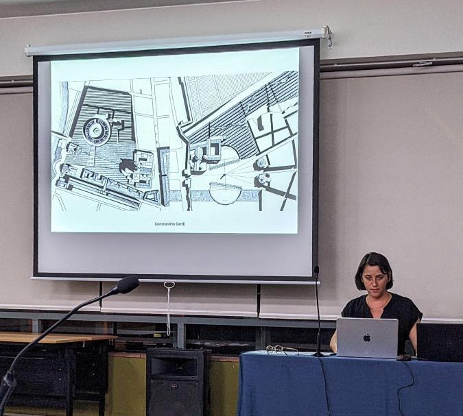 La investigación “Santiago Interrotta” toma prestado su nombre de la exposición de 1978: “Roma Interrotta”, que invitó a doce arquitectos a re-imaginar Roma a partir del plano Nolli, resultando en doce intervenciones teóricas. Cada arquitecto imaginó una ciudad distinta a través del re-dibujo, una ciudad latente en la ciudad existente. De esta forma, en la conferencia, Celedón compartió ejercicios académicos —realizados durante el Taller Inaugural MARQ del segundo semestre 2022—, incluyendo además propuestas curatoriales y de escritura en torno a las posibilidades de mirar la ciudad desde la memoria, la historia, el dibujo y la preexistencia. Estas exploraciones tomaron como premisa que Santiago de algún modo se detuvo en 1978, año clave en que, bajo la dictadura militar, la desregulación cambió para siempre la ciudad.