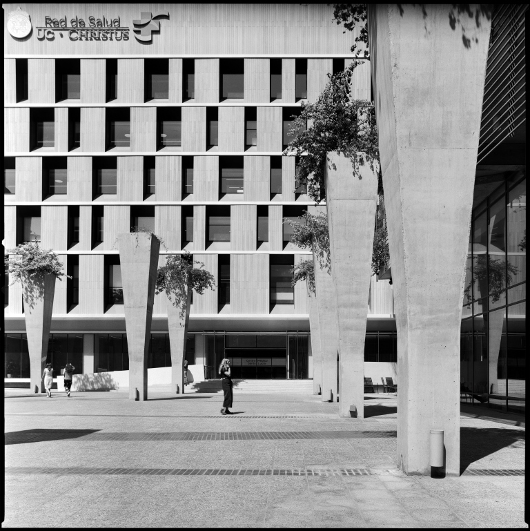 Con una superficie de cerca de 14.300 metros cuadrados distribuidos en 8 pisos y 5 subsuelos, el edificio de cirugías ambulatorias “Centro Médico Santa Lucía Red UC Christus” fue encargado al profesor ARQ UC y jefe del Magíster en Proyecto Urbano UC Antonio Lipthay por su amplia experiencia en proyectos hospitalarios de alta complejidad. Inaugurado a mediados de abril, entre las características del edificio destacan el revestimiento de madera —en su exterior, pero también en las áreas comunes al interior—, compuesto por paneles prensados acetilados de alta resistencia al fuego, a la radiación solar y al paso del tiempo.