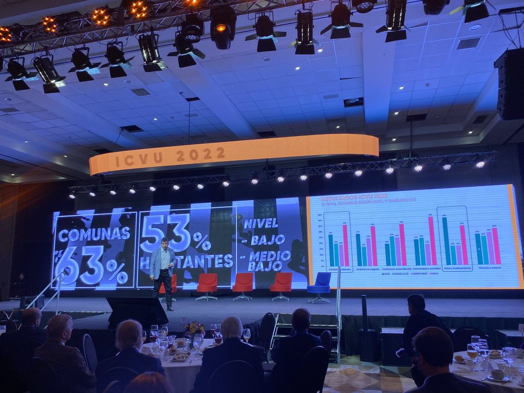 Durante la mañana del martes 16 de mayo el académico y jefe de gestión académica Arturo Orellana, presentó el índice de Calidad de Vida Urbana 2022, trabajado por el Instituto de Estudios Urbanos y Territoriales UC y la Cámara Chilena de la Construcción.
