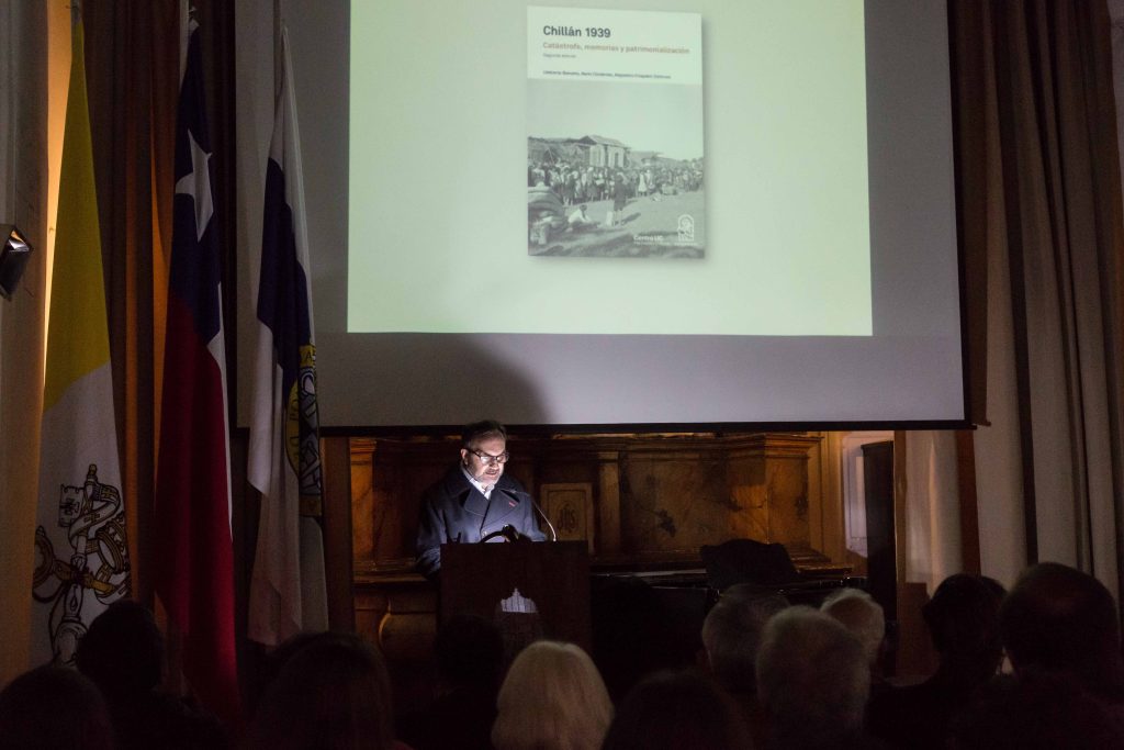 Luego de ello, el Premio Nacional de Arquitectura 2022, profesor Fernando Pérez, presentó en la sección “Legados: protagonistas del patrimonio en la UC”, la contribución Sergio Larraín García Moreno y su contribución al patrimonio cultural de la Pontificia Universidad Católica de Chile. Finalmente, se lanzó el libro:  “Chillan, 1939. Catástrofe, memorias y patrimonialización”, de Umberto Bonomo, Karen Cárdenas y Alejandro Crispiani, como editores. Este último explicó el libro, sus capítulos y sus motivaciones.