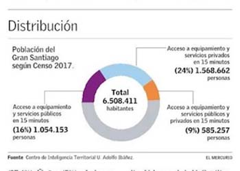 Bajo acceso caminable de santiaguinos a servicios y equipamientos desde su hogar
