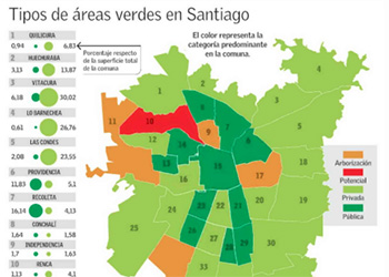 Estudio revela que la mayoría de las áreas verdes en las ciudades chilenas son privada